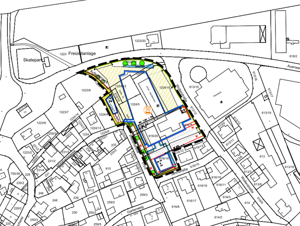 Ziel der Planung ist die Erweiterung und der Umbau des bestehenden Feuerwehrhauses sowie der Neubau eines Atemschutzausbildungszentrums.