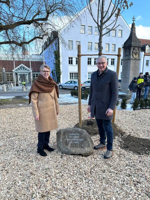 Mit einer symbolträchtigen Baumpflanzung hat die Stadt Dingolfing am vergangenen Freitag offiziell ihr Jubiläumsjahr zum 775-jährigen Bestehen eröffnet. In der Oberen Stadt pflanzten Bürgermeisterin Maria Huber und Landrat Werner Bumeder eine Silberlinde – das erste sichtbare Zeichen des Jahresmottos: „Gemeinsam feiern – zusammen wachsen“. Zur Erinnerung an diesen Moment wurde zudem ein Gedenkstein enthüllt, auf dem unter anderem das Datum der Pflanzung eingraviert ist.