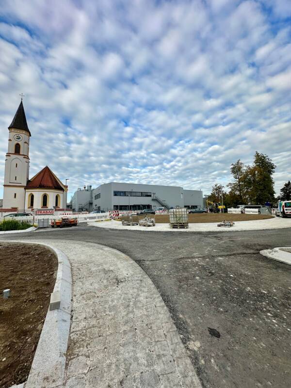 Asphaltierungs- und Restarbeiten am neuen Kreisverkehr