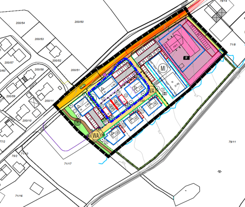 Der Lageplan mit Kennzeichnung der Abgrenzung des räumlichen Geltungsbereiches zwischen der